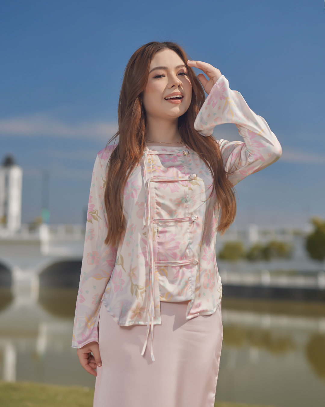 A soft printed satin top adorned with blooming florals. Designed with a flattering relaxed fit and gentle sheen, it drapes gracefully. The Floral Whimsy collection brings out your natural charm whether you’re dressing for work, a cafe date, sunlit days or a casual stroll.